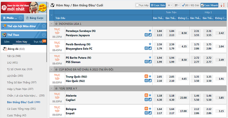 Kèo bàn thắng đầu cuối