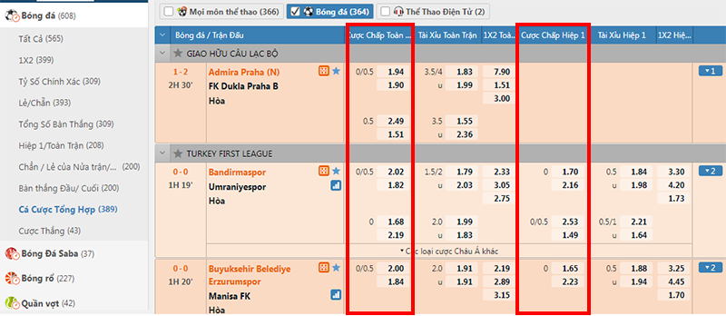 - Kèo cược chính: Ngụ ý nói về những loại kèo bóng đá phổ biến có nhiều người tham gia.