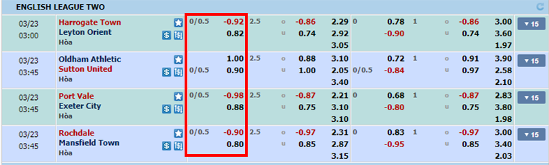 - Nếu 2 đội có tỷ số hòa nhau => Cược kèo dưới sẽ ăn được nửa tiền, còn nếu nằm kèo trên thì coi như mất hết.