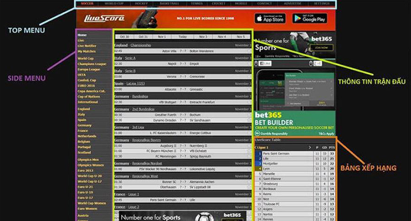Giao diện trang kèo nhà cái Livescore có những gì nổi bật?