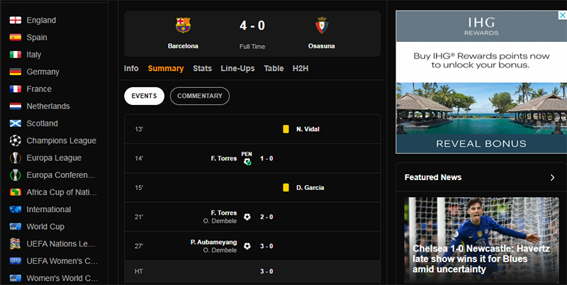 Trang livescore này lên bố cục rất tổng quát. Hoàn toàn có thể giúp người chơi dễ dàng tìm được những thông tin đang quan tâm.