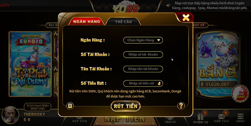 Cách rút tiền từ tài khoản game bài Yo88